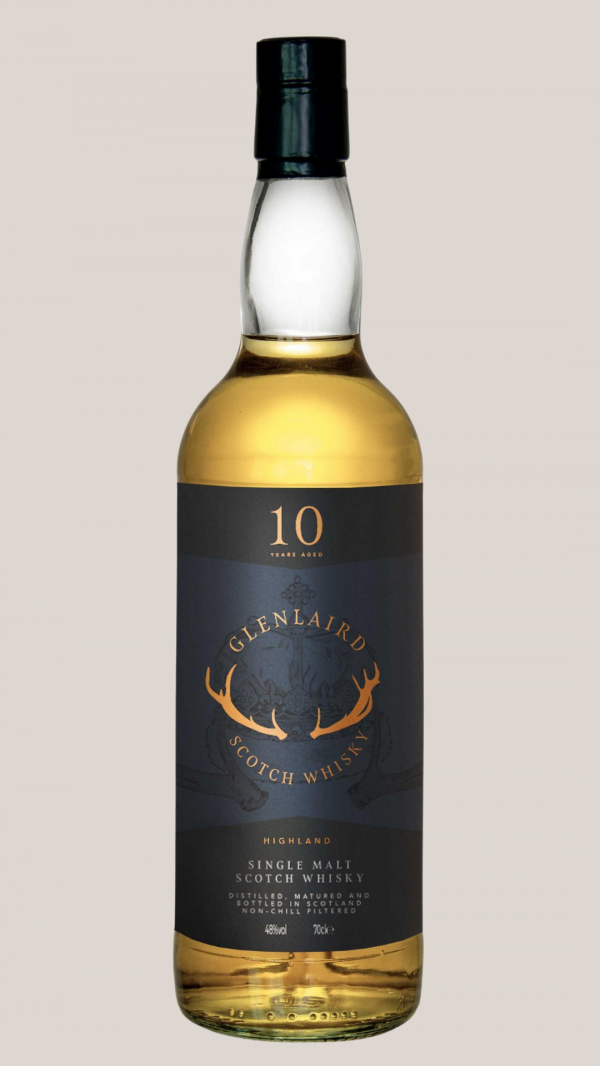 Glenlaird 10 year old Highland single malt Scotch whisky: Salted vanilla and wet grass, sweet marmalade with a hint of lemon zest. Sawdust and orange peel with a toasted caramel finish.